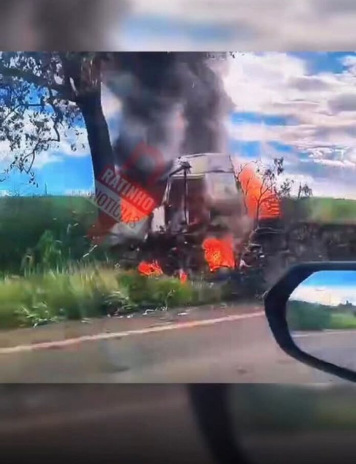 Segundo informações, o veículo saiu da pista e colidiu contra uma árvore às margens da via. Com o impacto, minutos depois o caminhão começou a pegar fogo, chamando a atenção de motoristas que passavam pelo local.