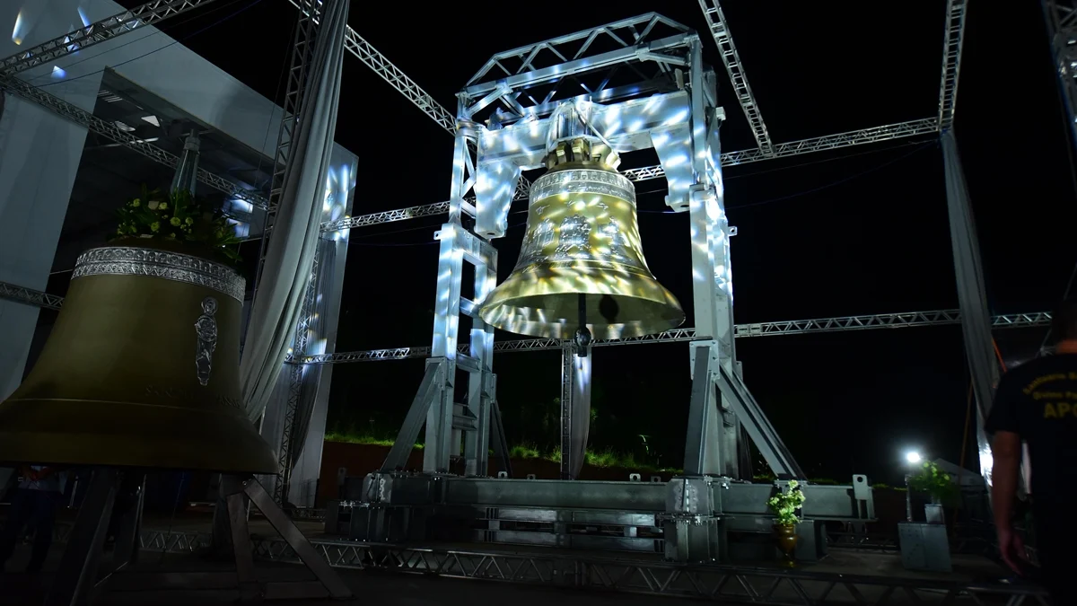 Pesando mais de 55 toneladas e com quase 5 metros de altura, o sino está instalado na nova torre da Basílica do Divino Pai Eterno e é considerado o maior do planeta em massa e volume. A celebração foi conduzida pelo bispo auxiliar da Arquidiocese de Goiânia, Dom José Roberto, e contou com a participação da Orquestra Sinfônica de Goiânia (OSGO) e do Coro Juvenil de Goiânia, que abriram a programação musical pouco antes do primeiro toque oficial do sino.