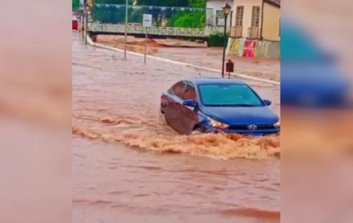 O Rio Vermelho transbordou e deixou ruas alagadas após uma chuva forte que atingiu a cidade de Goiás desde a madrugada desta terça-feira, 6. O Córrego Manoel Gomes também apresentou grande volume de água e a praça em frente ao prédio histórico da prefeitura ficou alagada.