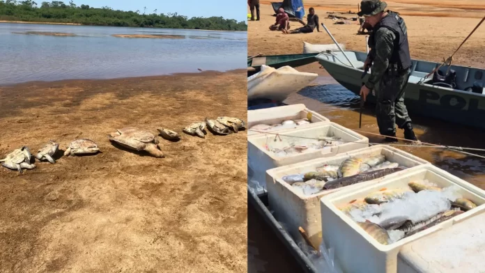 Durante a operação, os agentes apreenderam mil metros de redes de emalhar com malhas variadas, uma arma de fogo artesanal calibre 22 com 20 munições, uma ave silvestre abatida (jacu), 720 quilos de peixe das espécies tucunaré, surubim, pacu e curvina, além de dez tartarugas vivas que foram devolvidas à natureza. Também foram apreendidos três motores de rabeta de 18 HP, três embarcações e os equipamentos utilizados na prática ilegal.